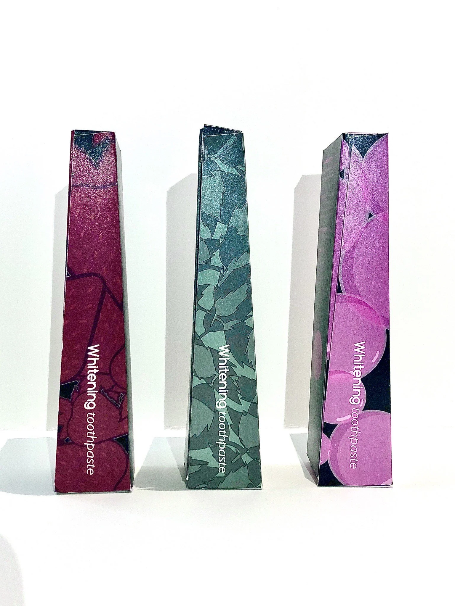 There was no unique logo for this product, in that Rite Aid made the charcoal toothpaste. For the logo, I ultimately decided to use a descriptive name that both encompasses simplicity and panache. The flavors I chose for my iterations are three of the most popular among dental hygiene companies.